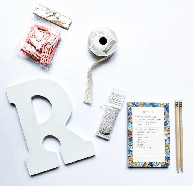 For my DIY photo display, I am going to be hanging a line of photos in front of the fireplace that proudly display the happy couple with pictures from their engagement, their dates, and more. How will I do this, you ask? Once again, it’s REALLY simple. Y’all gotta know I don’t have time for anything too complicated, and I’m sure you don’t either. So, here’s what you need: