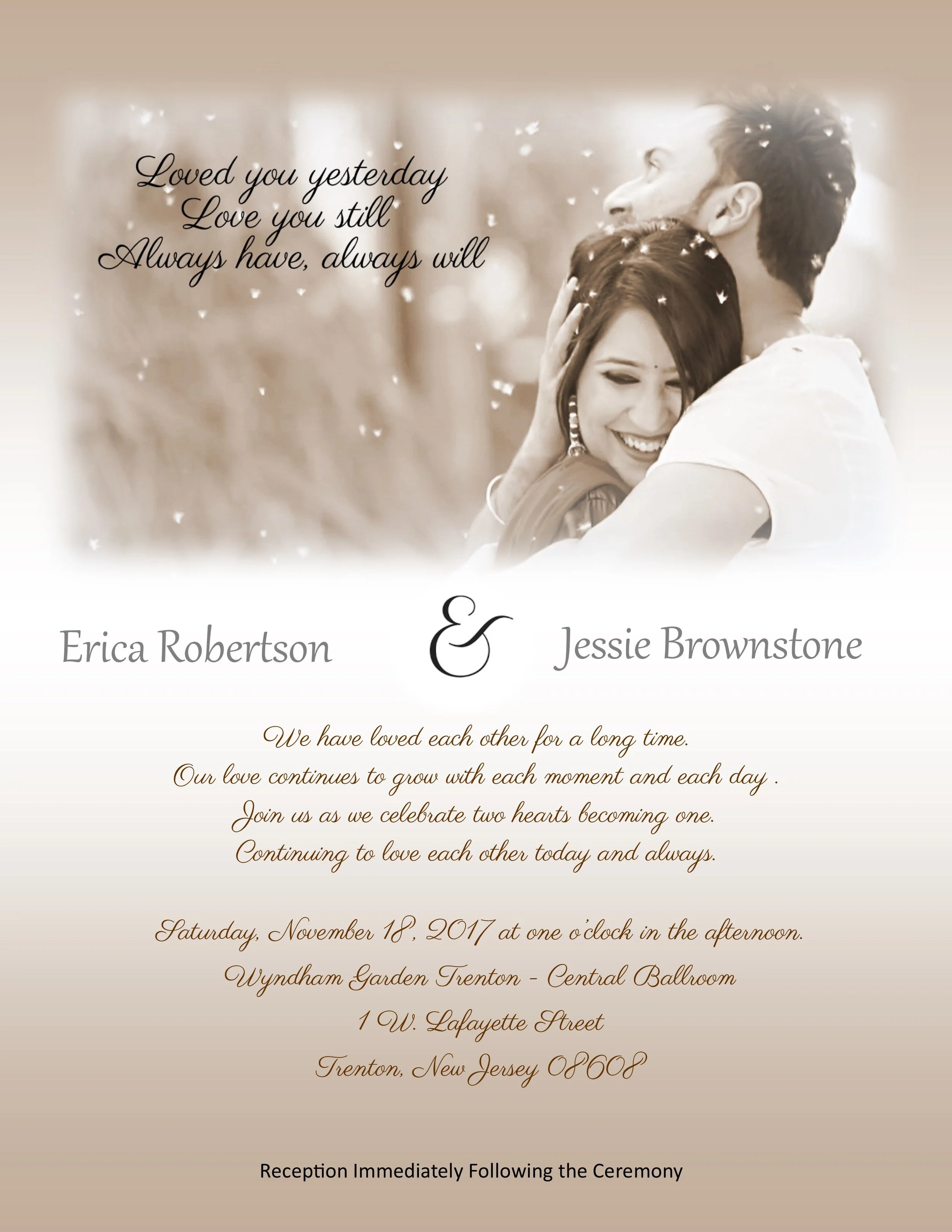 PSR Designs is here to help make your day as special as both of you are. Your invitation and/or Save the Date sets the tone for the entire event. Invitations do not have to “break your budget”. I am here to offer affordable, quality, custom, designed products. Each invitation/Save the Date is designed to your specification. I strongly believe in making sure my clients are happy with our product and my work. Let’s work together to create/design an invitation to meet your needs and totally set the tone for your day.